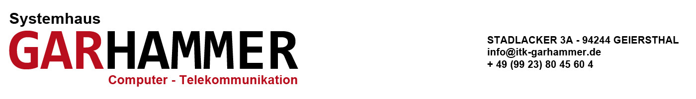 Systemhaus Garhammer Stadlacker 3a 94244 Geiersthal Tel. +49 9923 804 393 - 0 Fax. +49 9923 804 393 - 29